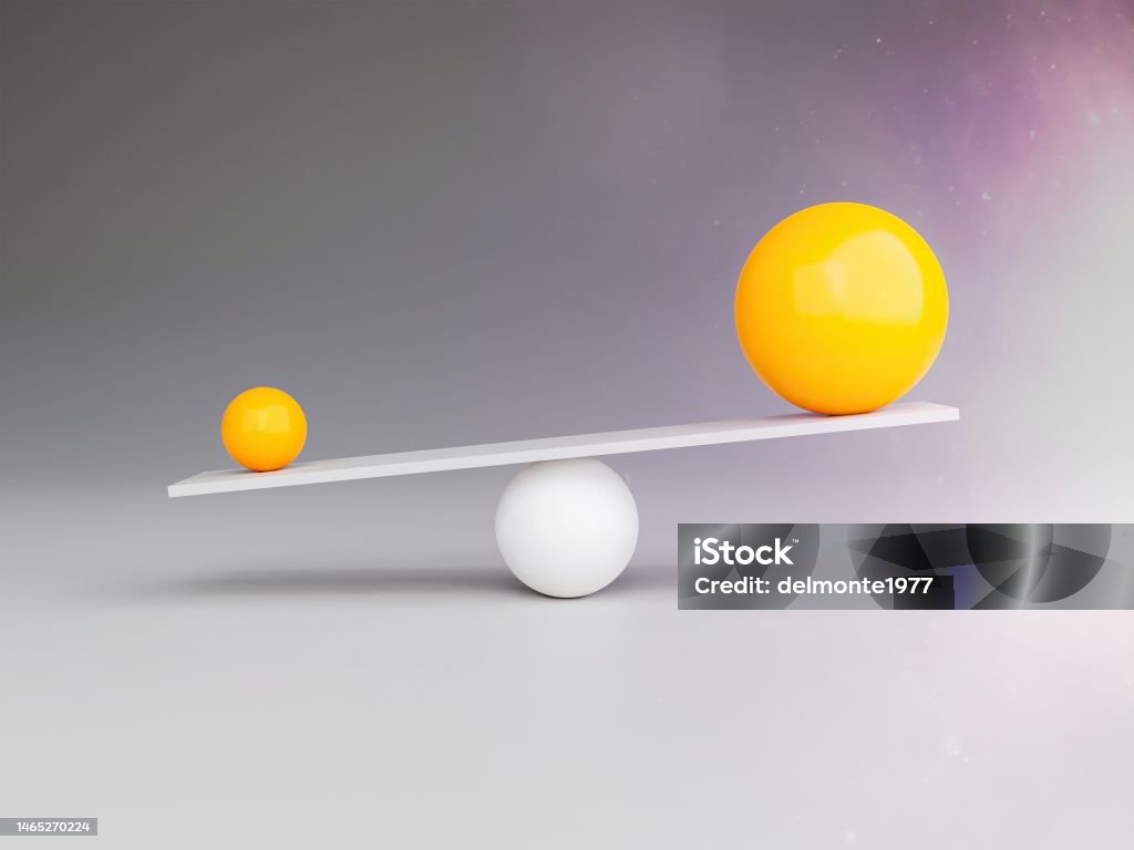 spheres in balance with different sizes and the small one with more weight than the big one. 3d render